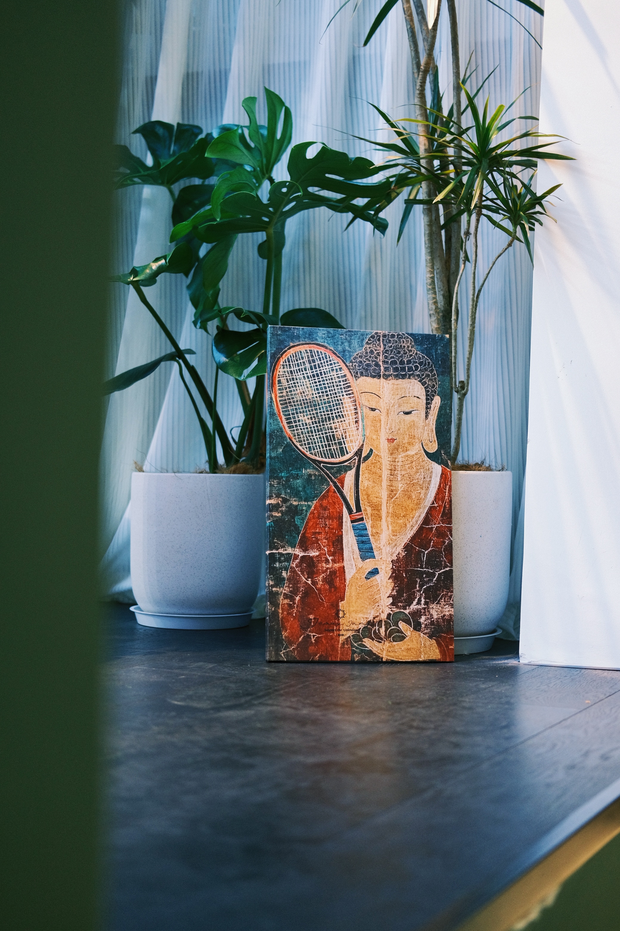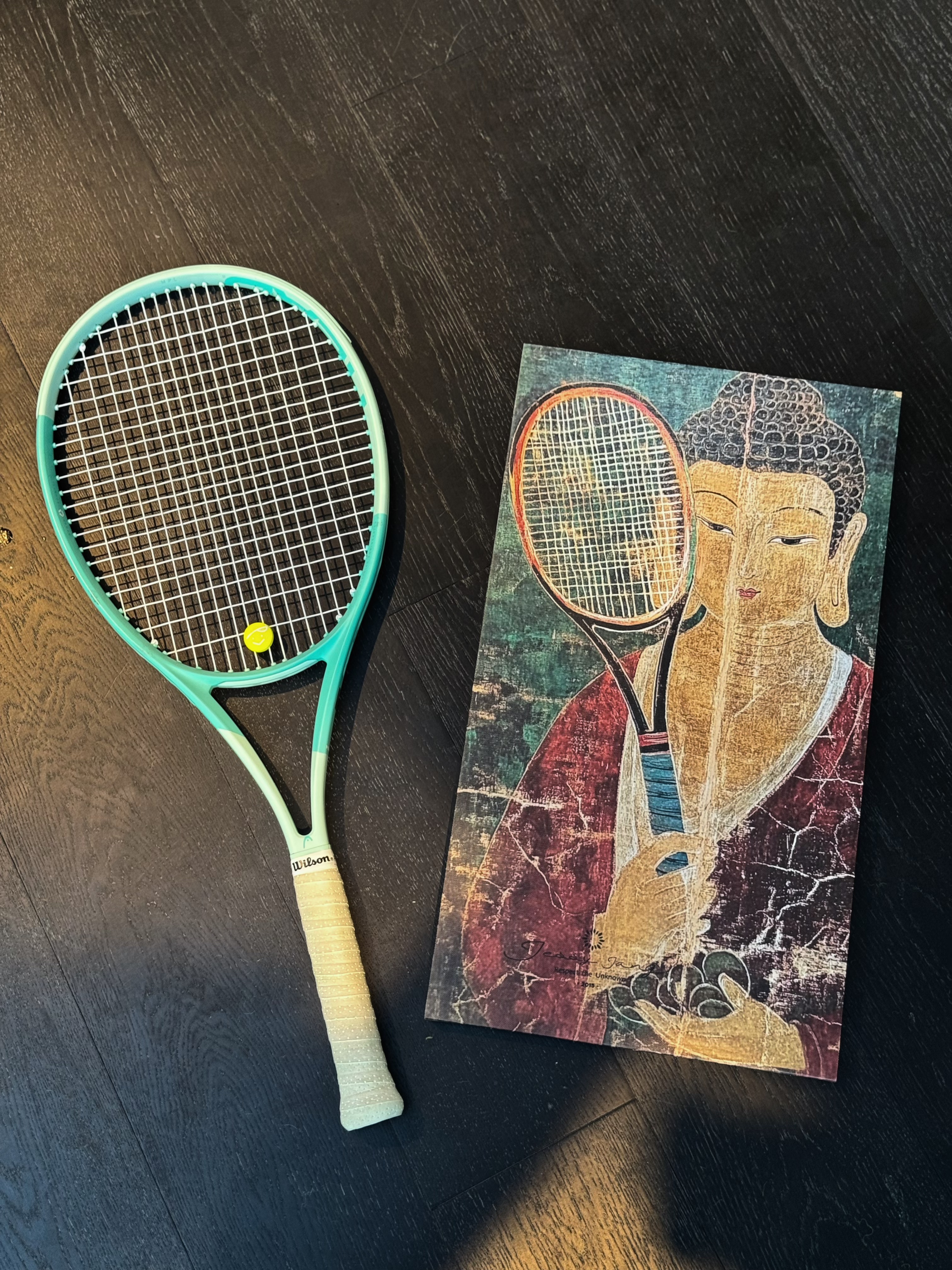 🎾 灵感来源于每次一个人去打球的状态。网球算是运动中的冥想吧,喜欢它进入抛开凡尘的心流时刻,全神贯注,沉浸打球。所以,佛,打网球吗?